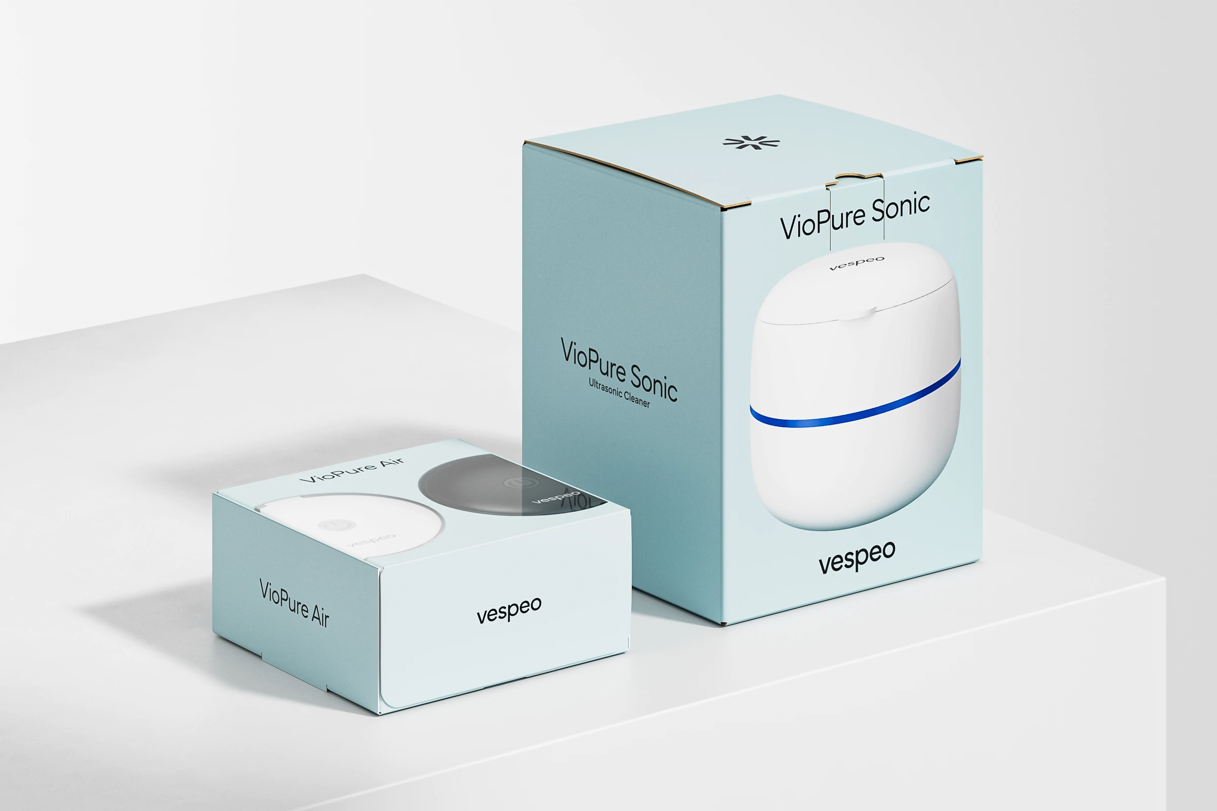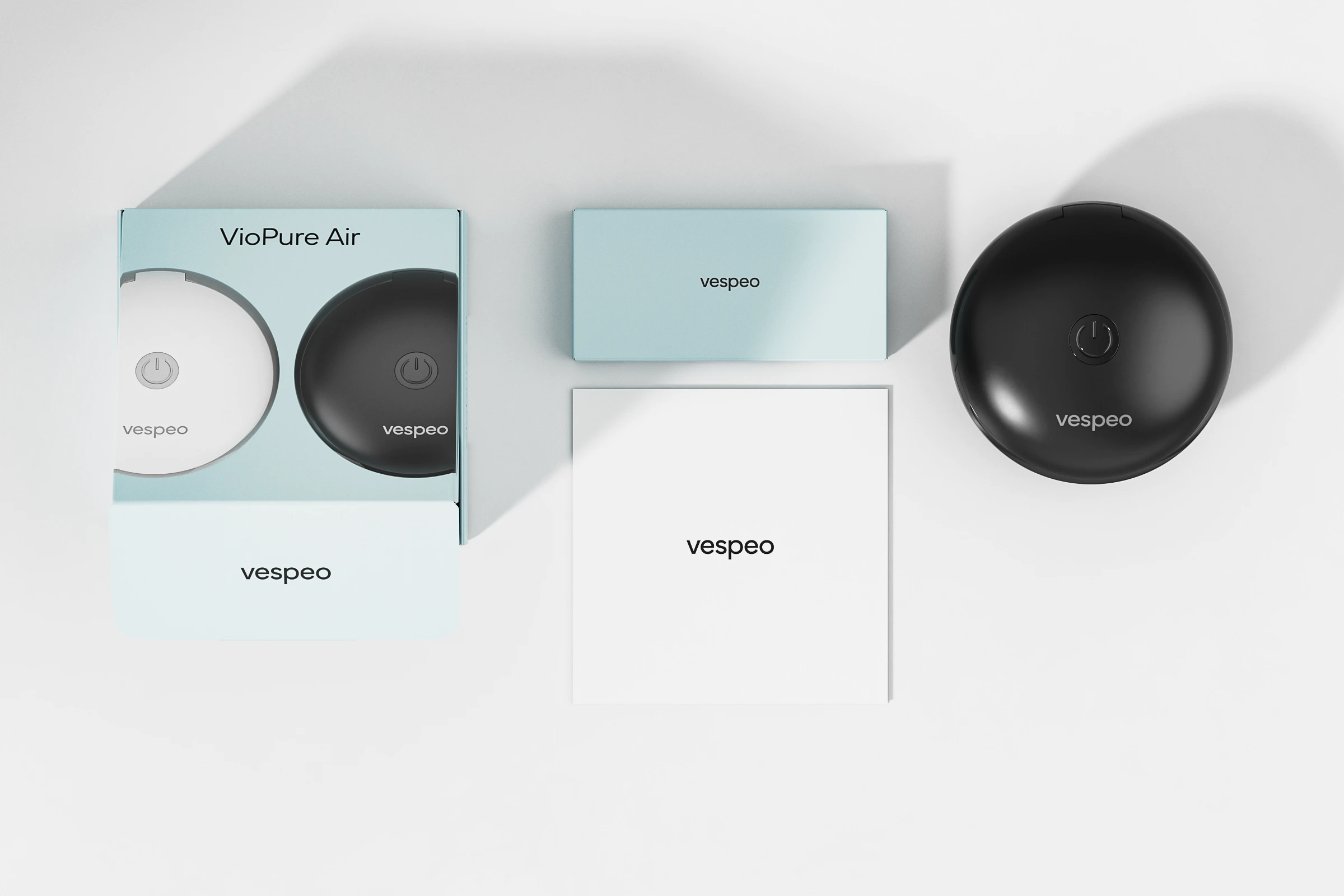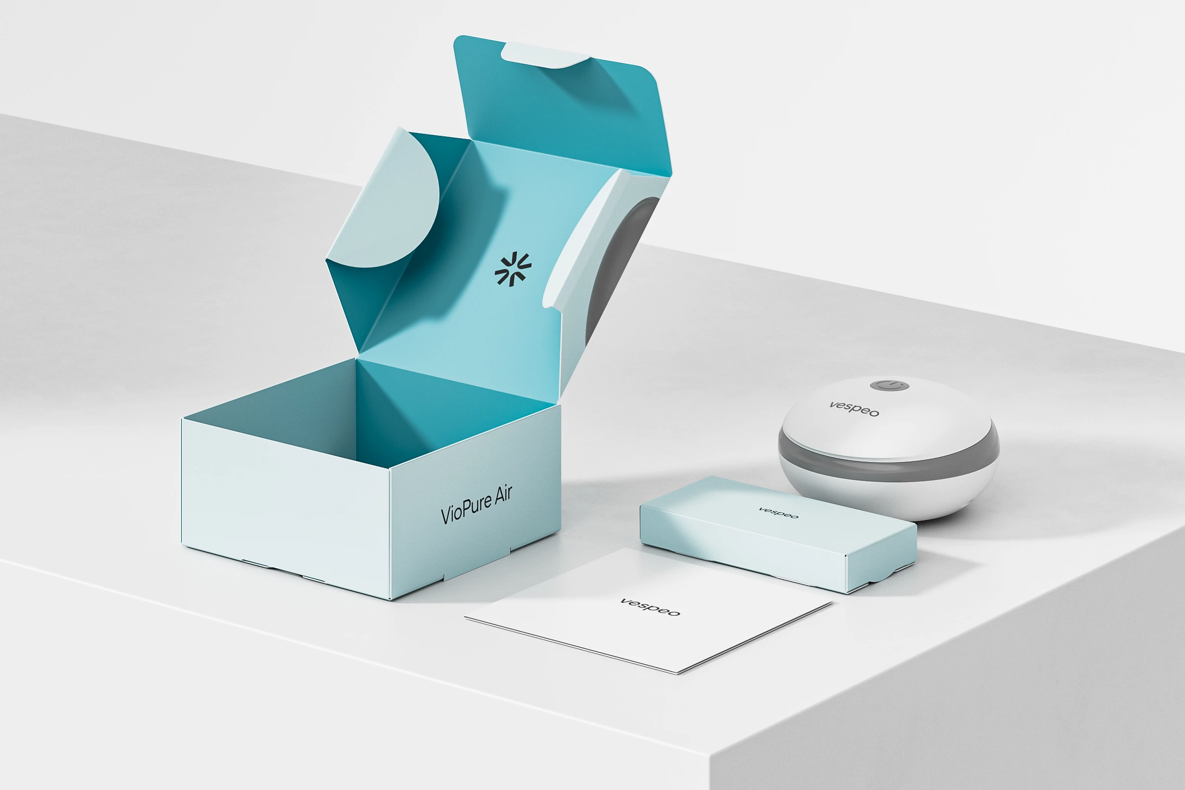 The commission involved creating a complete visual identity, which included the creation of the Vespeo brand name, the design of the logo, and the graphic design of the products’ unique packaging, including the 3D product models and rendered images used on the packaging.